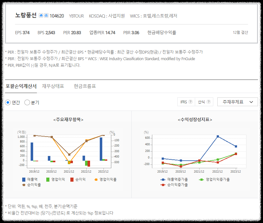 -2023년 12월 전년동기 대비 연결기준 매출액은 348.1% 증가, 영업이익 흑자전환, 당기순이익 흑자전환. 여행 정상화 효과로 매출액이 348% 급등하며 영업이익, 당기순이익 모두 흑자전환함. 코로나19로 인해 위축되었던 여행산업의 회복에 힘입어 그동안 구축한 여행 온라인 플랫폼 경쟁력을 기반으로 흑자전환에 성공함. 다양한 패키지 상품 출시로, 정상 수준으로 회복되고 있는 여행시장을 선점할 계획임.