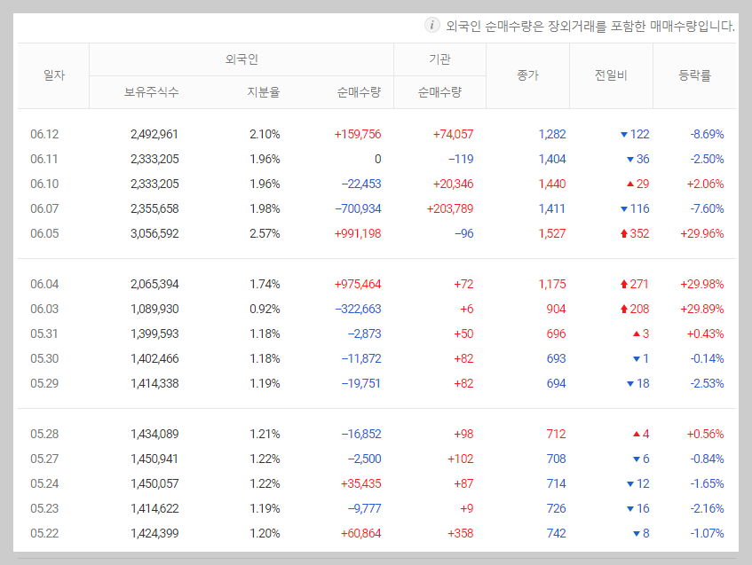 그래서 개인 투자자는 기관이나 외국인 세력을 따르고, 세력이 약해도 어떤 걸 사고팔아 이익을 얻습니다. 최근에는 외국인보다 기관 투자자를 따르는 경우가 늘어나고 있습니다. 외국인의 매수는 허수가 많으며 개인의 단기 거래는 기관과 유사하기 때문입니다.
