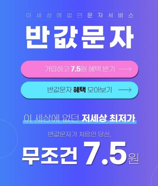 또한, 국내 최저 SMS 가격인 7.5원으로 메시지를 발송할 수 있으며, 무료문자 25건도 제공됩니다.