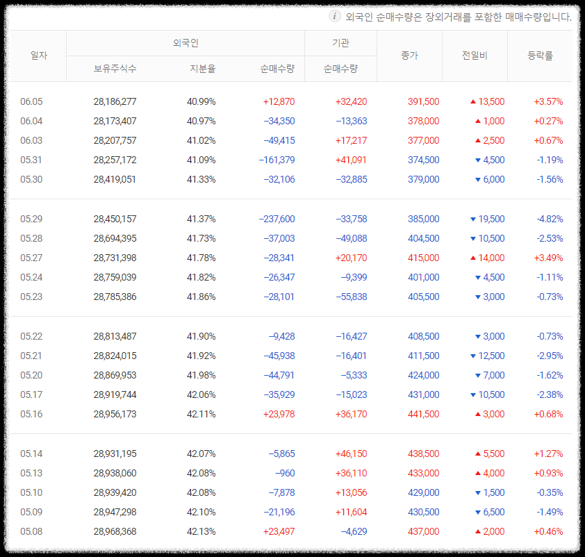 그러므로 개인 투자자는 기관이나 외국인 세력의 추세를 따르고, 약한 세력에서도 어떤 것을 매수하고 매도하여 수익을 냅니다. 최근에는 외국인보다 기관 투자자를 따르는 흐름이 많습니다. 외국인의 매수는 종종 허수로 여겨지고, 개인의 단기 거래는 기관과 유사한 경향이 있습니다.