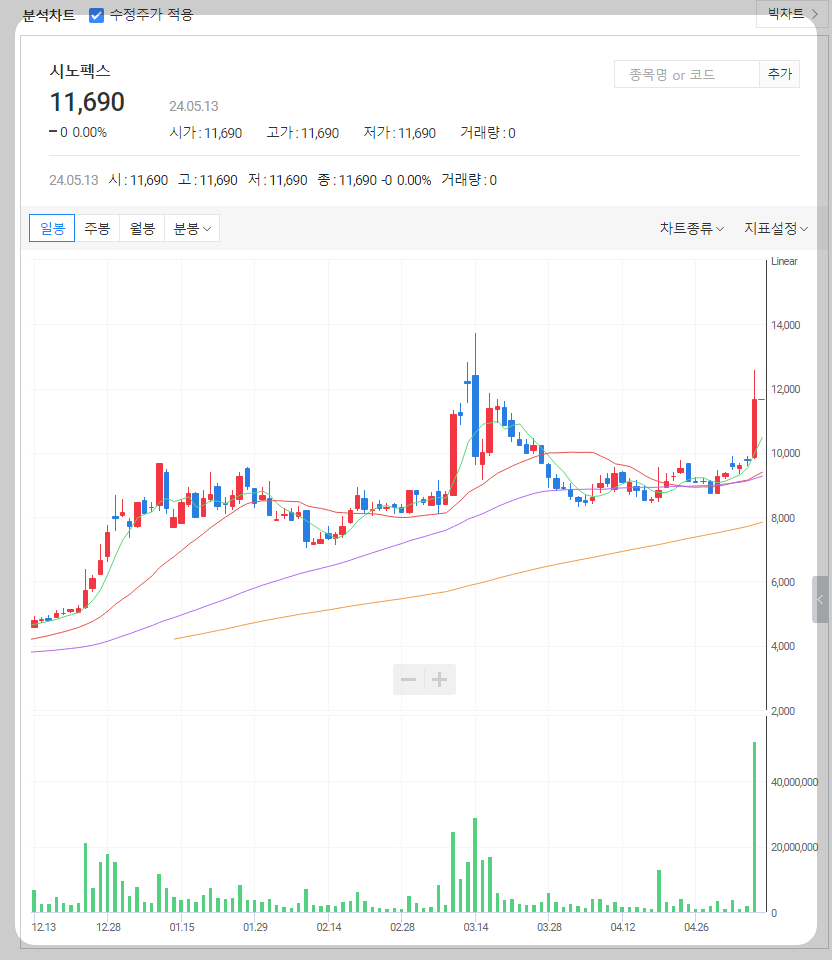 시노펙스 주가 분석