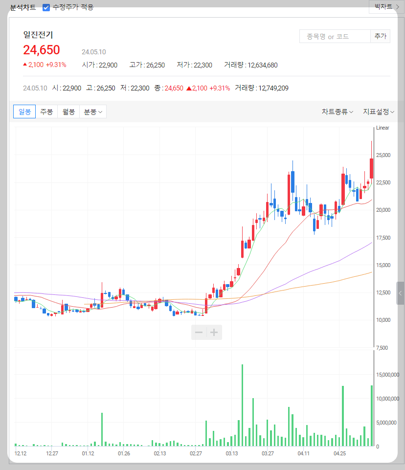 일진전기 주가 분석