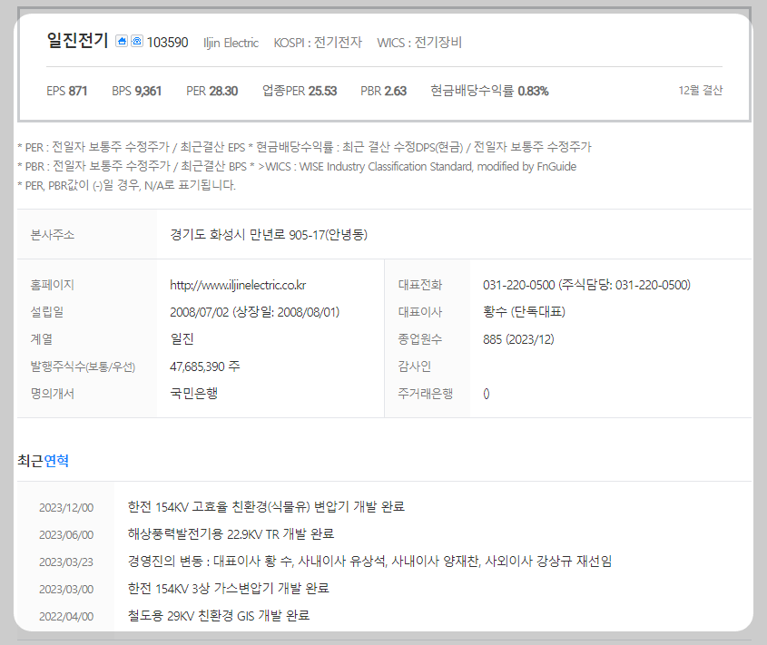 본 글에서는 일진전기의 주가 전망, 목표 주가 및 기업 정보를 다룹니다. 주식 투자의 핵심은 미래 기업 가치를 예측하고 이에 따라 선도적으로 행동하는 것입니다. 투자 대상을 선정하기 전에는 해당 기업의 현재 상태와 지표를 면밀히 검토해야 합니다. 일진전기의 주요 상황과 투자 정보를 살펴보고, 주식 투자에 유용한 자료를 정리해 제공하니 참고하여 효과적인 투자를 진행하시길 바랍니다.