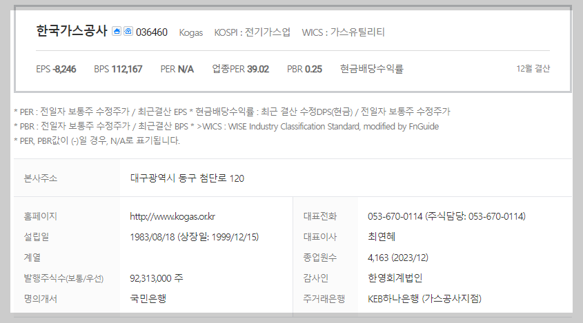 본 글은 한국가스공사의 주가 전망, 목표 주가 및 기업 정보에 대해 다룹니다. 주식 투자의 핵심은 미래 기업 가치를 예측하고 이에 따라 선도적으로 행동하는 것입니다. 투자 결정을 내리기 전에는 기업의 현재 상태와 재무 수치를 면밀히 검토해야 합니다. 한국가스공사 주식의 주요 상황과 투자 정보를 정리하여 투자자 여러분께 유용한 자료를 제공하고자 합니다.