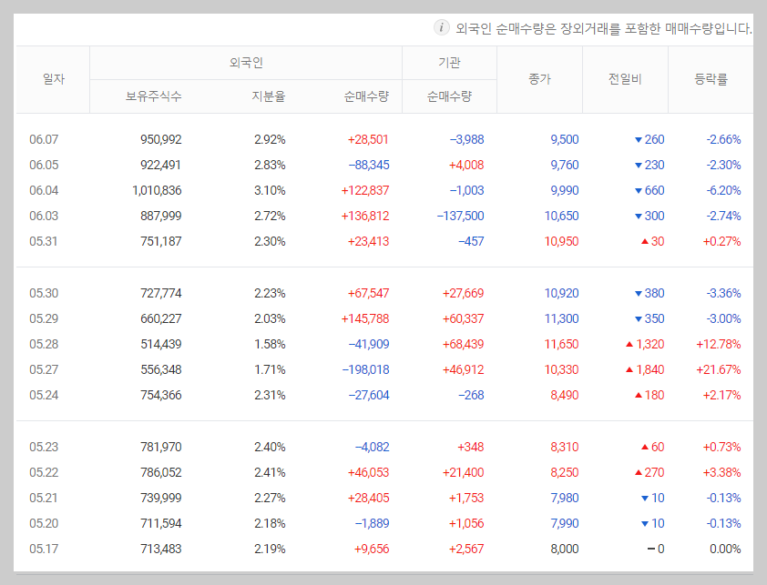 따라서 개인 투자자는 기관이나 외국인 세력을 따라가고, 세력이 약해도 투자 전략으로 수익을 얻을 수 있습니다. 최근에는 외국인보다 기관 투자자를 따르는 흐름이 많습니다. 외국인의 매수는 종종 허수로 여겨지고, 개인의 단기 거래는 기관과 유사한 경향이 있습니다.