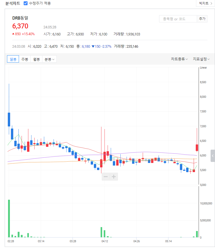DRB동일 주가 분석