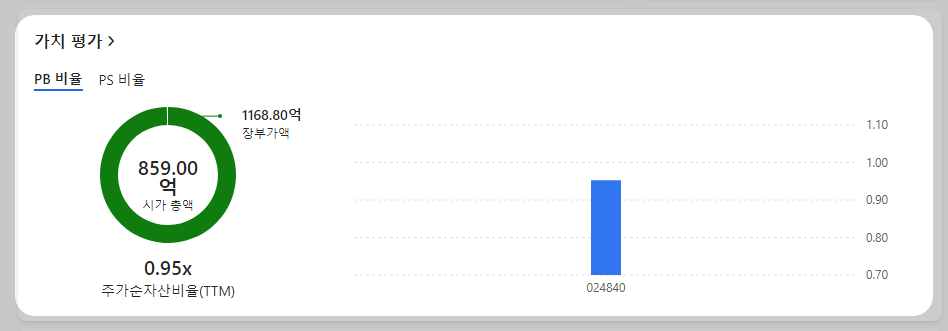 기업 가치 평가에는 다양한 방법이 있지만, 그중에서도 기술 지표를 활용하는 방법을 소개합니다. KBI메탈은 전체 기술주 2,091개 기업 중 1,753위 등급인 입니다. 대표 섹터 평가 기업 중 등급인 입니다. 대표 테마 평가 기업 중에서는 를 차지했습니다. 이를 바탕으로 투자 매력도를 평가해 보면 전체 기술주, 대표 섹터, 대표 테마의 결과를 얻을 수 있습니다. 동종분야 기업들의 평균적인 기술력 대비 주가에 비하여 현재 동사의 기술력 대비 주가는 고평가 되어 있습니다.