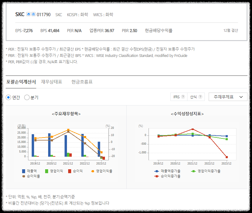 -2023년 12월 전년동기 대비 연결기준 매출액은 34.2% 감소, 영업이익 적자전환, 당기순손실은 303.1% 증가. 대내외 경영 환경이 악화되며 매출이 감소했으며 영업손익은 적자 전환되었음. 2024년 역시 지정학적 갈등 고조 등 글로벌 경영환경 불확실성으로 전년 대비 변동성은 더욱 커질 것으로 예상됨. 동사는 2차 전지, 반도체, 친환경 중심의 사업구조를 확립하고, 미래 성장에 투자를 집중할 예정임.